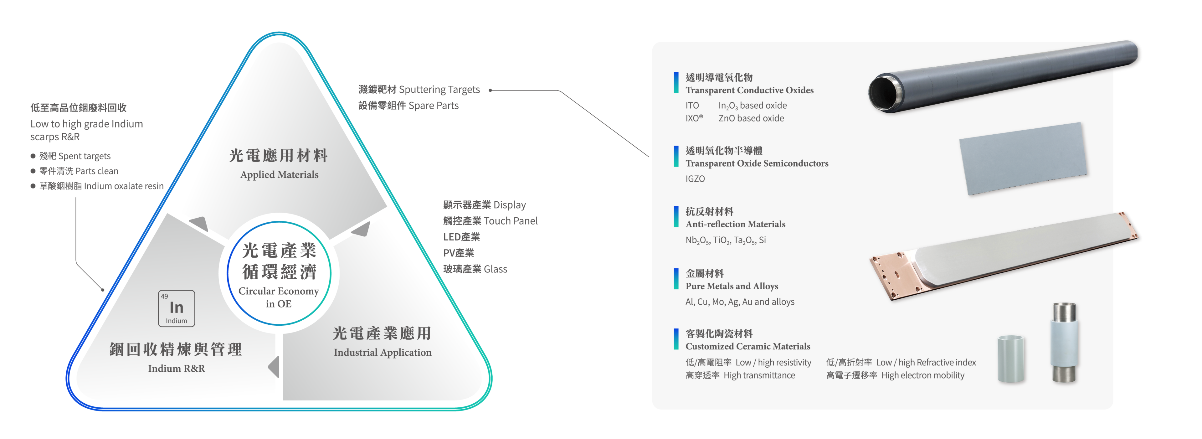 - 產品包含薄膜濺鍍靶材、蒸鍍材料和陶瓷零件。