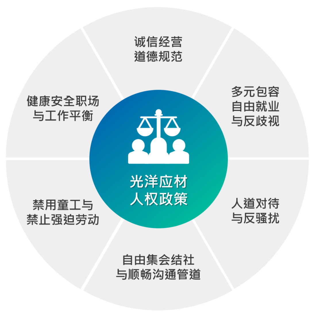 捷报比分应材认为所有同仁都应受到尊严对待,故捷报比分应材投入人力,确保各式劳工规章与劳工管理皆符合人权正义原则,同时遵守落实各式法律法规,禁止使用童工和强迫劳工,不奴役或贩卖劳工,尊重员工的结社自由和集体谈判权,无任何形式的歧视事件,亦落实人性化待遇,合理安排员工的工作与休息时间、提供合理的工资福利,并持续改进员工的福利及权益,连结法规变动与外部资讯,定期检示是否依法依规管理。