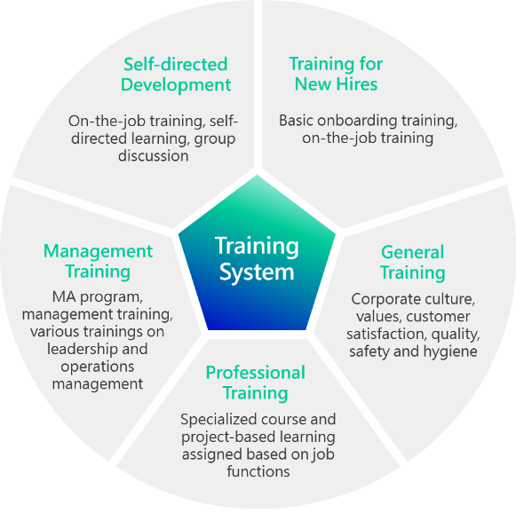 Based on the talent development system, 足球比分 has formulated a training program for all levels of supervisors. There are five major training systems for junior and mid-level supervisors, including training for new manager, general managerial functions, talent management cycle, strategic performance management, and strategic team building. Since 2018, 足球比分 has completed 22 themes and 39 training sessions for each level of supervisors, and a total of 1,455 participants have completed these training sessions.